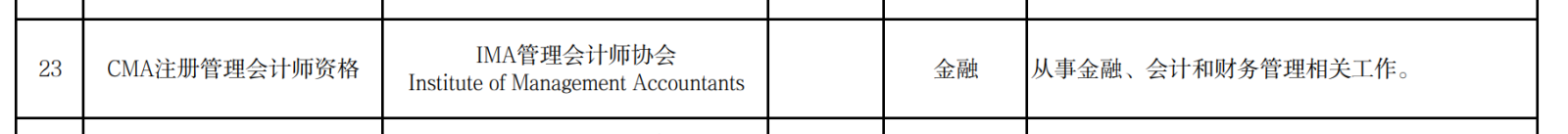 2023年9月4日,北京市人力资源和社会保障局、市人才工作局联合出台《北京市境外职业资格认可目录(3.0版)》(简称“目录3.0版”),包括急需紧缺境外职业资格清单(7项)以及境外职业资格清单(115项)“含金量高”的境外职业资格共计122项,其中CMA注册管理会计师证书赫然在列。