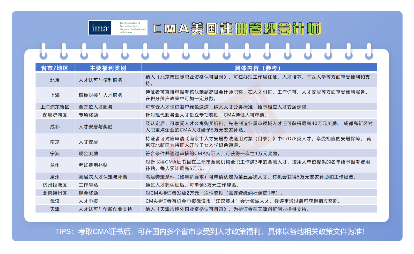 CMA适合于不满足掌握传统财会技能的人,考试涉及会计、战略、市场、管理、金融和信息系统等多方面的知识和技能,目的在于扩大财务管理会计人员的知识广度,培养其预测商业需求及制定策略决策的能力,顺利实现财务人员角色转换,因此被业内誉为财会界的MINI-MBA。